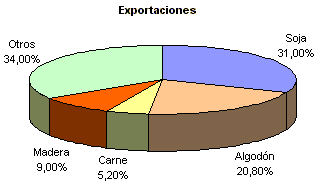 agroganadera: soja, carne bovina, maíz, piensos, aceites vegetales. En